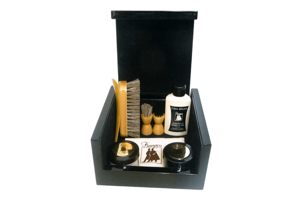 The most important aspect of proper leather care is to establish a routine and use the appropriate products regularly. This kit gathers together for you a good line up of products to keep your shoes in tip top shape. Use what Famaco included routinely and add other products to the box as needed for your individual shoe care situation.