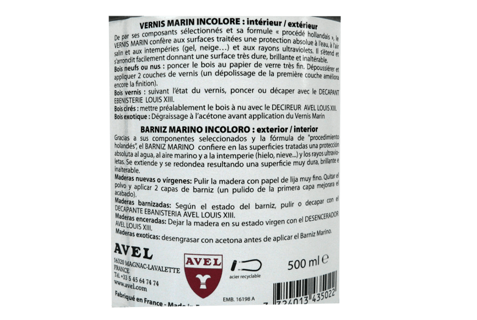 The absolute exterior wood panel’s protection offered by Marine Varnish makes it ideal for indoor and outdoor surfaces where a rugged, durable finish is desired. Use it for furniture, boats, paneling and cottage walls and doors to prevents damage caused by ultraviolet rays of the sun, by salt corrosion from sea air or sea water and from the effects of harsh cold, ice and snow. The colorless formula provides a finish that is clear, hard and bright for long lasting beauty.